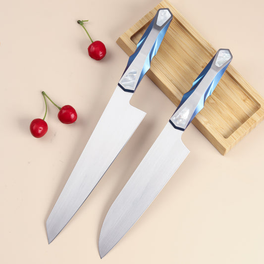 LAMBO FUTURISM Kitchen Chef's Knife, Damasteel Powder Steel, Titanium&Mother of Pearl