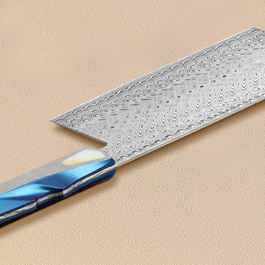 8-Inch Nakiri Knife, Damascus Steel, Resin