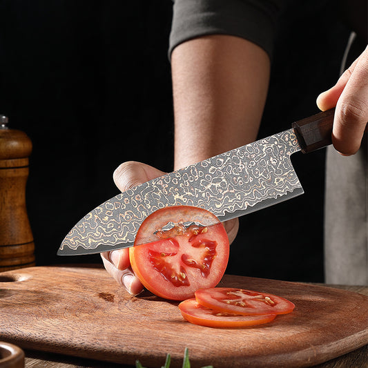 6.8-Inch Santoku Knife, Copper Damascus Steel, Ebony Wood