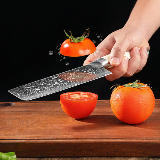 Creme White Series 7-Inch Nakiri Knife, High Carbon Damascus Steel, ABS
