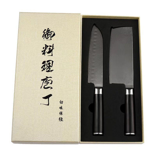 2 Pcs Japanese Kitchen Knife Set, Damascus Steel, Ebony