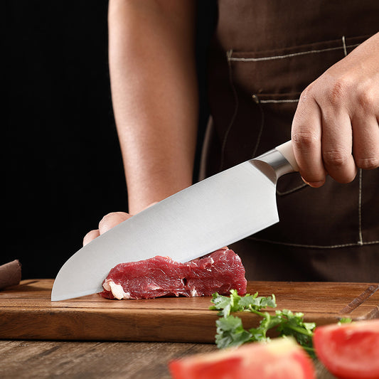 Creme White Series 7-Inch Santoku Knife, German 1.4116 Steel, ABS