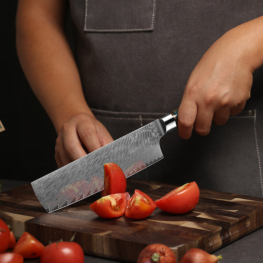 7.3-Inch Nakiri Knife, Damascus Steel, Resin