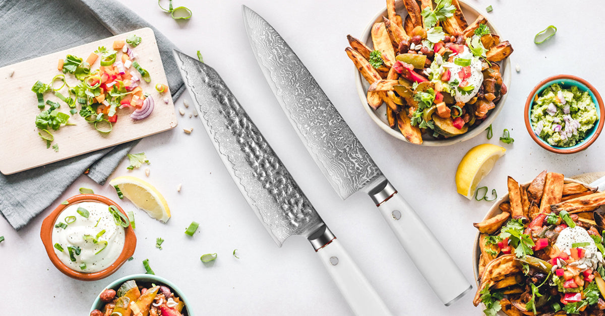 El cuchillo de cocina de acero de Damasco es su mejor compañero...