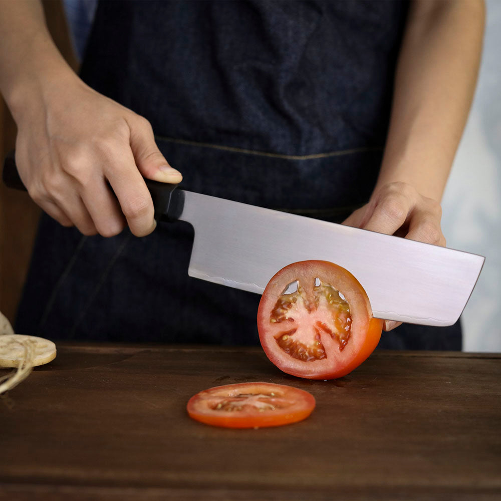 **Wipe the knife clean after cooking, especially after cutting out acidic foods.